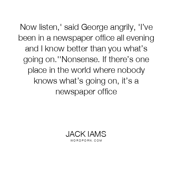 Now listen,' said George angrily, 'I’ve been in a newspaper office all evening and I know better than you what’s going on.''Nonsense. If there’s one place in the world where nobody knows what’s going on, it’s a newspaper office