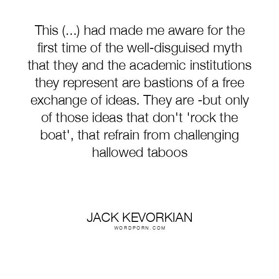 This (...) had made me aware for the first time of the well-disguised myth that they and the academic institutions they represent are bastions of a free exchange of ideas. They are -but only of those ideas that don't 'rock the boat', that refrain from challenging hallowed taboos