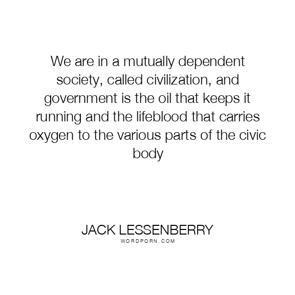 We are in a mutually dependent society, called civilization, and government is the oil that keeps it running and the lifeblood that carries oxygen to the various parts of the civic body