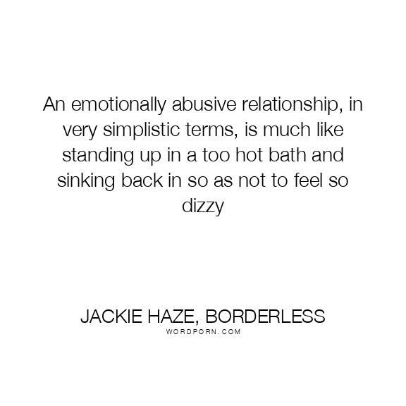 An emotionally abusive relationship, in very simplistic terms, is much like standing up in a too hot bath and sinking back in so as not to feel so dizzy