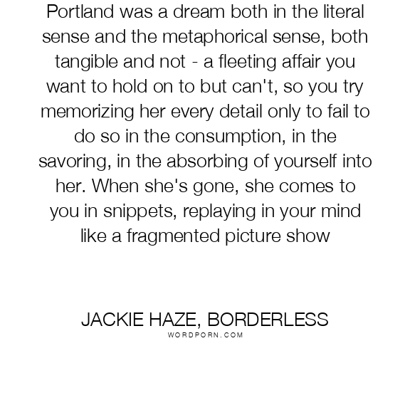 Portland was a dream both in the literal sense and the metaphorical sense, both tangible and not - a fleeting affair you want to hold on to but can't, so you try memorizing her every detail only to fail to do so in the consumption, in the savoring, in the absorbing of yourself into her. When she's gone, she comes to you in snippets, replaying in your mind like a fragmented picture show