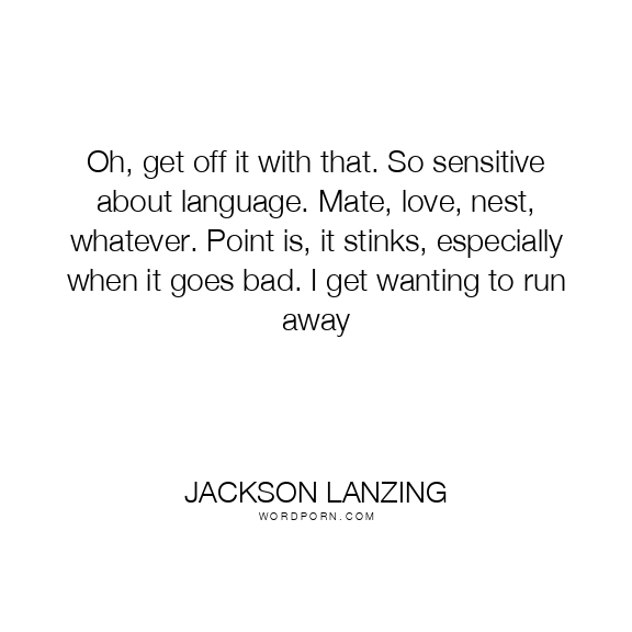 Copy Image Oh, get off it with that. So sensitive about language. Mate, love, nest, whatever. Point is, it stinks, especially when it goes bad. I get wanting to run away Moms Typewriter A A SAVE THIS IMAGE