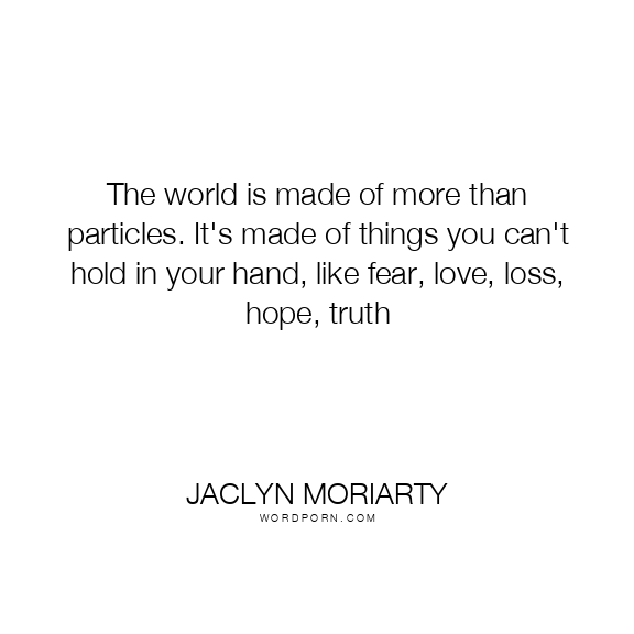 The world is made of more than particles. It's made of things you can't hold in your hand, like fear, love, loss, hope, truth