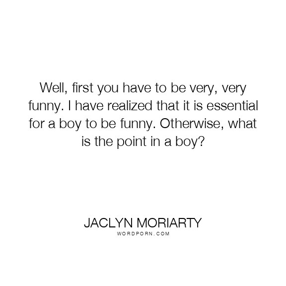 Well, first you have to be very, very funny. I have realized that it is essential for a boy to be funny. Otherwise, what is the point in a boy?