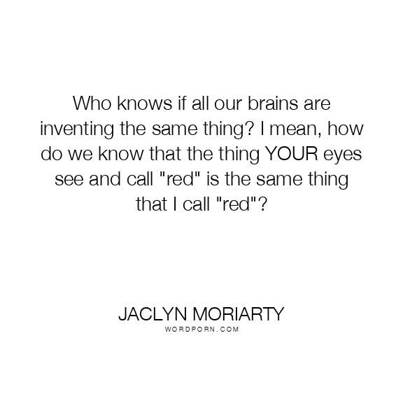 Who knows if all our brains are inventing the same thing? I mean, how do we know that the thing YOUR eyes see and call "red" is the same thing that I call "red"?