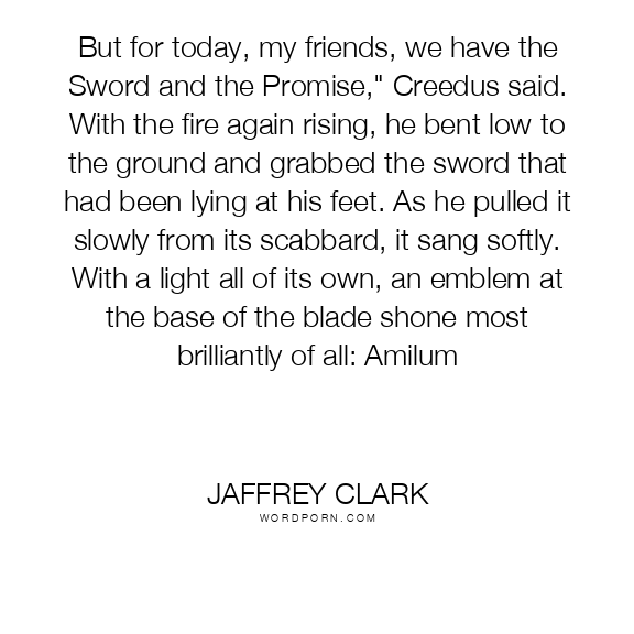 But for today, my friends, we have the Sword and the Promise," Creedus said. With the fire again rising, he bent low to the ground and grabbed the sword that had been lying at his feet. As he pulled it slowly from its scabbard, it sang softly. With a light all of its own, an emblem at the base of the blade shone most brilliantly of all: Amilum