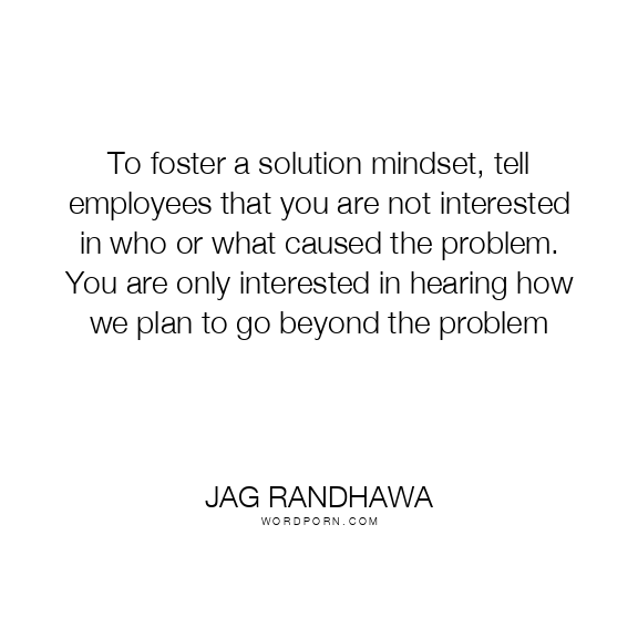 To foster a solution mindset, tell employees that you are not interested in who or what caused the problem. You are only interested in hearing how we plan to go beyond the problem