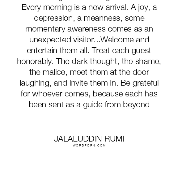 This being human is a guest house. Every morning is a new arrival. A joy, a depression, a meanness, some momentary awareness comes as an unexpected visitor...Welcome and entertain them all. Treat each guest honorably. The dark thought, the shame, the malice, meet them at the door laughing, and invite them in. Be grateful for whoever comes, because each has been sent as a guide from beyond