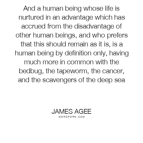 And a human being whose life is nurtured in an advantage which has accrued from the disadvantage of other human beings, and who prefers that this should remain as it is, is a human being by definition only, having much more in common with the bedbug, the tapeworm, the cancer, and the scavengers of the deep sea