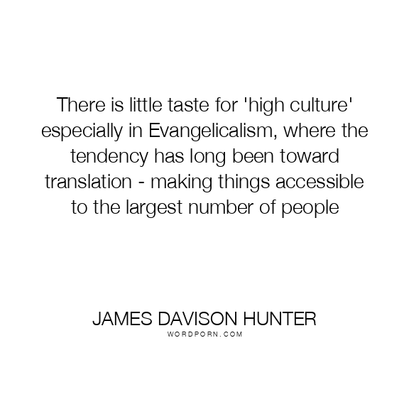 There is little taste for 'high culture' especially in Evangelicalism, where the tendency has long been toward translation - making things accessible to the largest number of people