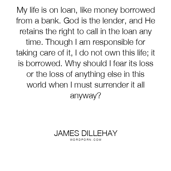 My life is on loan, like money borrowed from a bank. God is the lender, and He retains the right to call in the loan any time. Though I am responsible for taking care of it, I do not own this life; it is borrowed. Why should I fear its loss or the loss of anything else in this world when I must surrender it all anyway?
