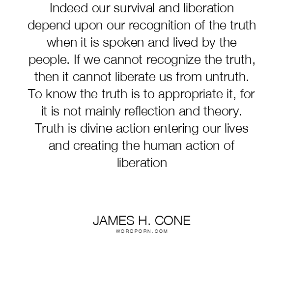 Indeed our survival and liberation depend upon our recognition of the truth when it is spoken and lived by the people. If we cannot recognize the truth, then it cannot liberate us from untruth. To know the truth is to appropriate it, for it is not mainly reflection and theory. Truth is divine action entering our lives and creating the human action of liberation