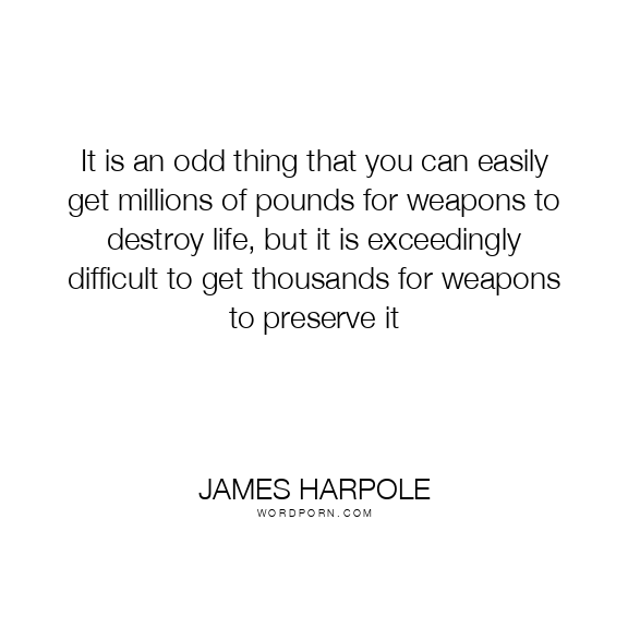 It is an odd thing that you can easily get millions of pounds for weapons to destroy life, but it is exceedingly difficult to get thousands for weapons to preserve it