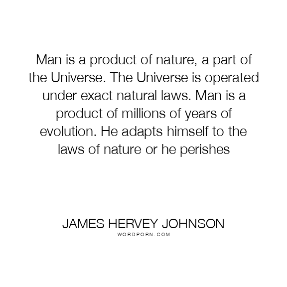 Man is a product of nature, a part of the Universe. The Universe is operated under exact natural laws. Man is a product of millions of years of evolution. He adapts himself to the laws of nature or he perishes