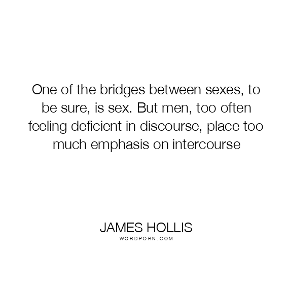 One of the bridges between sexes, to be sure, is sex. But men, too often feeling deficient in discourse, place too much emphasis on intercourse