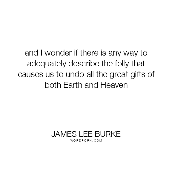 and I wonder if there is any way to adequately describe the folly that causes us to undo all the great gifts of both Earth and Heaven