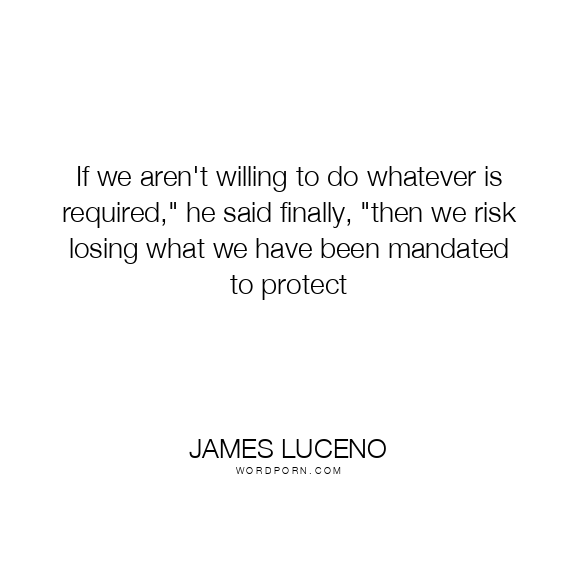 If we aren't willing to do whatever is required," he said finally, "then we risk losing what we have been mandated to protect