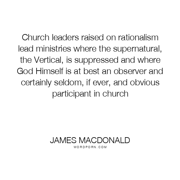 Church leaders raised on rationalism lead ministries where the supernatural, the Vertical, is suppressed and where God Himself is at best an observer and certainly seldom, if ever, and obvious participant in church