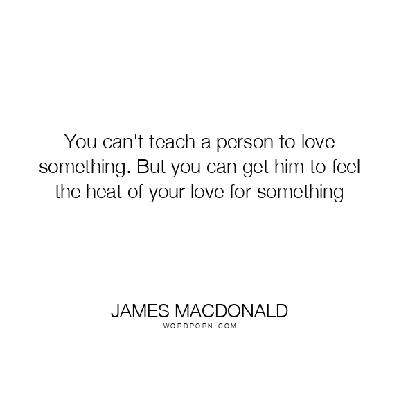 You can't teach a person to love something. But you can get him to feel the heat of your love for something