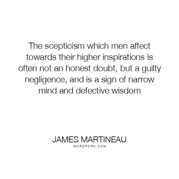 The scepticism which men affect towards their higher inspirations is often not an honest doubt, but a guilty negligence, and is a sign of narrow mind and defective wisdom