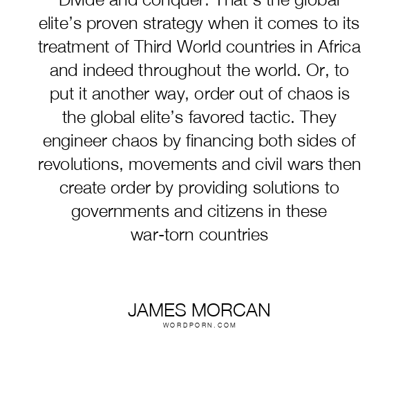 Divide and conquer. That’s the global elite’s proven strategy when it comes to its treatment of Third World countries in Africa and indeed throughout the world. Or, to put it another way, order out of chaos is the global elite’s favored tactic. They engineer chaos by financing both sides of revolutions, movements and civil wars then create order by providing solutions to governments and citizens in these war-torn countries
