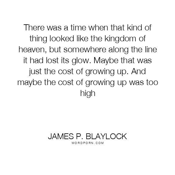 There was a time when that kind of thing looked like the kingdom of heaven, but somewhere along the line it had lost its glow. Maybe that was just the cost of growing up. And maybe the cost of growing up was too high