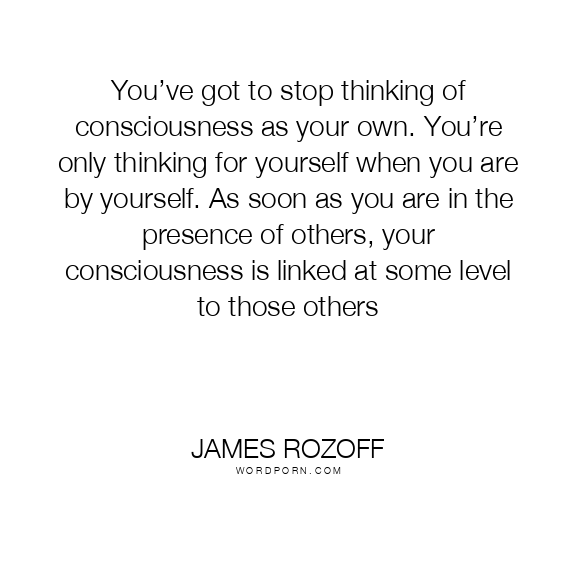 You’ve got to stop thinking of consciousness as your own. You’re only thinking for yourself when you are by yourself. As soon as you are in the presence of others, your consciousness is linked at some level to those others