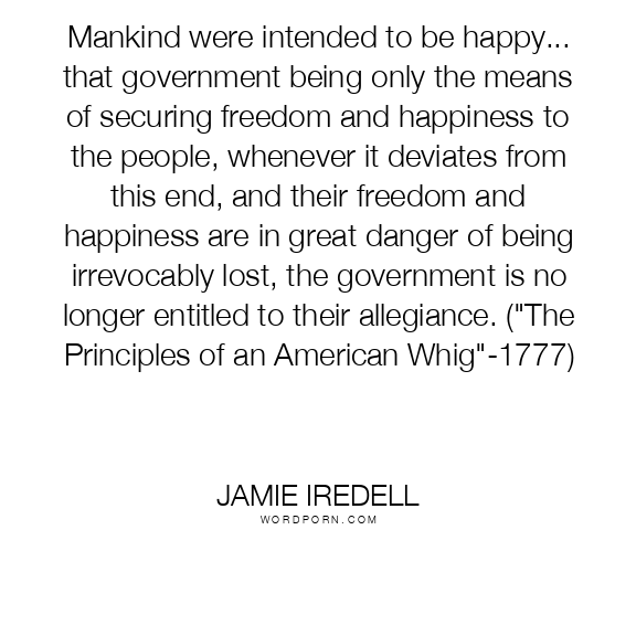 Mankind were intended to be happy... that government being only the means of securing freedom and happiness to the people, whenever it deviates from this end, and their freedom and happiness are in great danger of being irrevocably lost, the government is no longer entitled to their allegiance. ("The Principles of an American Whig"-1777)