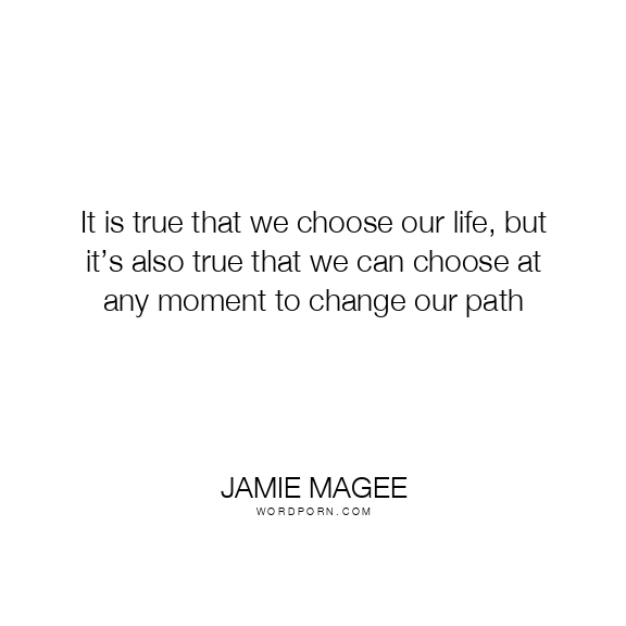 It is true that we choose our life, but it’s also true that we can choose at any moment to change our path