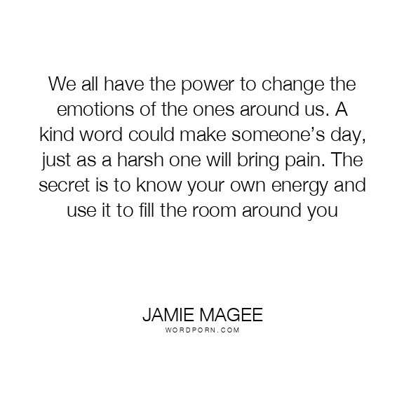 We all have the power to change the emotions of the ones around us. A kind word could make someone’s day, just as a harsh one will bring pain. The secret is to know your own energy and use it to fill the room around you