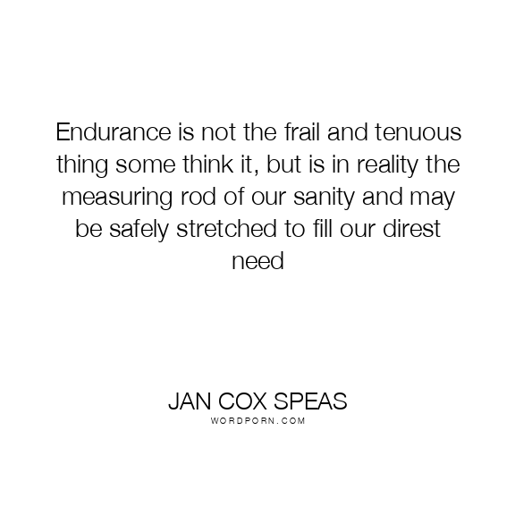Endurance is not the frail and tenuous thing some think it, but is in reality the measuring rod of our sanity and may be safely stretched to fill our direst need