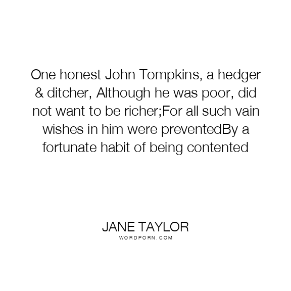 One honest John Tompkins, a hedger & ditcher, Although he was poor, did not want to be richer;For all such vain wishes in him were preventedBy a fortunate habit of being contented