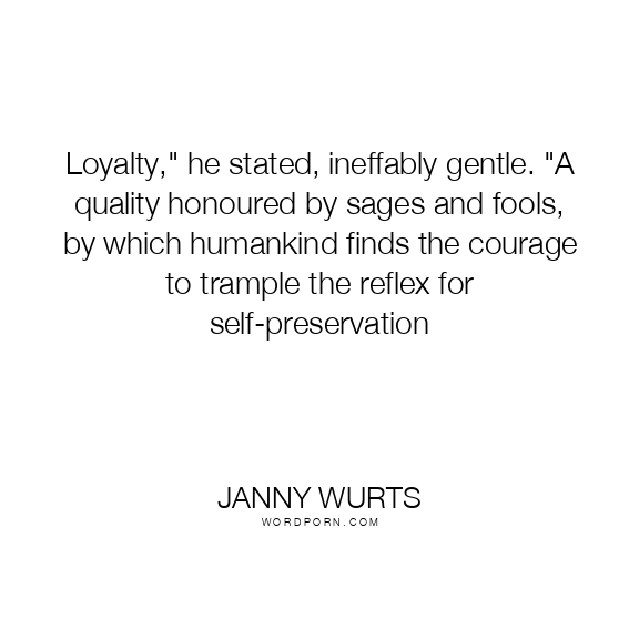 Loyalty," he stated, ineffably gentle. "A quality honoured by sages and fools, by which humankind finds the courage to trample the reflex for self-preservation