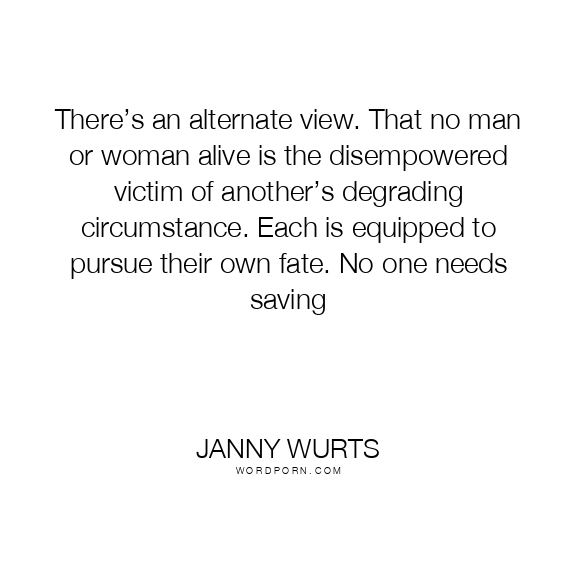 There’s an alternate view. That no man or woman alive is the disempowered victim of another’s degrading circumstance. Each is equipped to pursue their own fate. No one needs saving