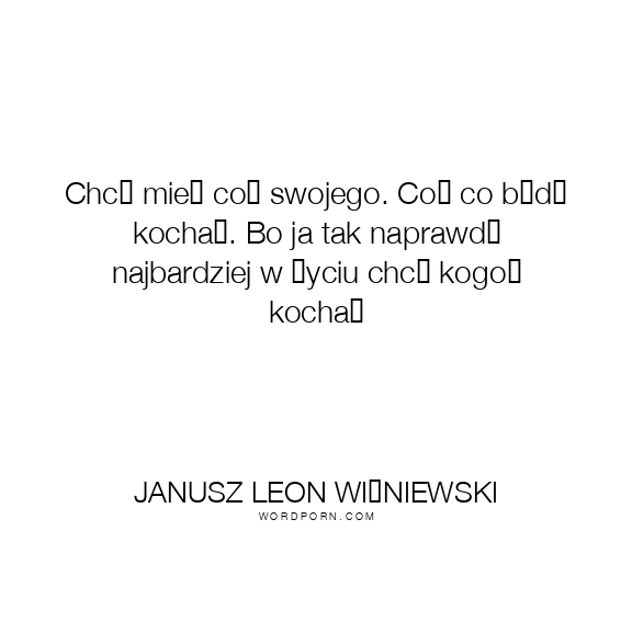 Chcę mieć coś swojego. Coś co będę kochać. Bo ja tak naprawdę najbardziej w życiu chcę kogoś kochać