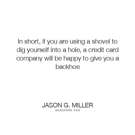 In short, if you are using a shovel to dig yourself into a hole, a credit card company will be happy to give you a backhoe