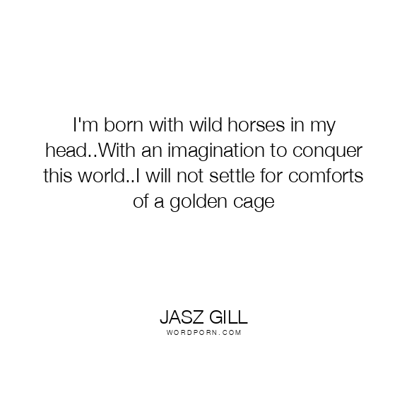 I'm born with wild horses in my head..With an imagination to conquer this world..I will not settle for comforts of a golden cage