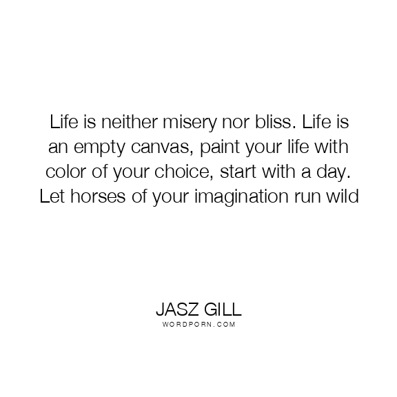 Life is neither misery nor bliss. Life is an empty canvas, paint your life with color of your choice, start with a day. Let horses of your imagination run wild