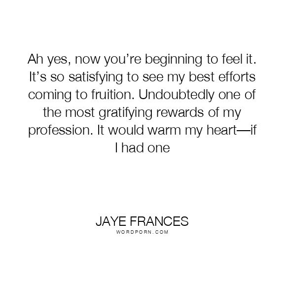 Ah yes, now you’re beginning to feel it. It’s so satisfying to see my best efforts coming to fruition. Undoubtedly one of the most gratifying rewards of my profession. It would warm my heart—if I had one