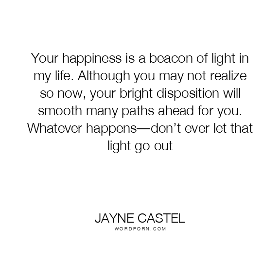 Your happiness is a beacon of light in my life. Although you may not realize so now, your bright disposition will smooth many paths ahead for you. Whatever happens—don’t ever let that light go out