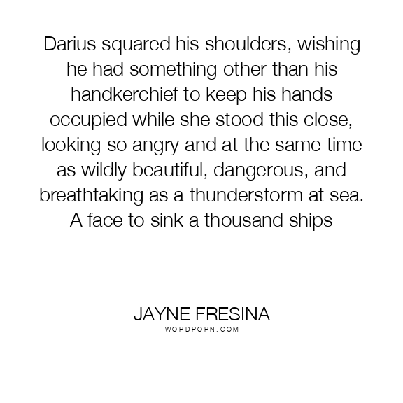 Darius squared his shoulders, wishing he had something other than his handkerchief to keep his hands occupied while she stood this close, looking so angry and at the same time as wildly beautiful, dangerous, and breathtaking as a thunderstorm at sea. A face to sink a thousand ships
