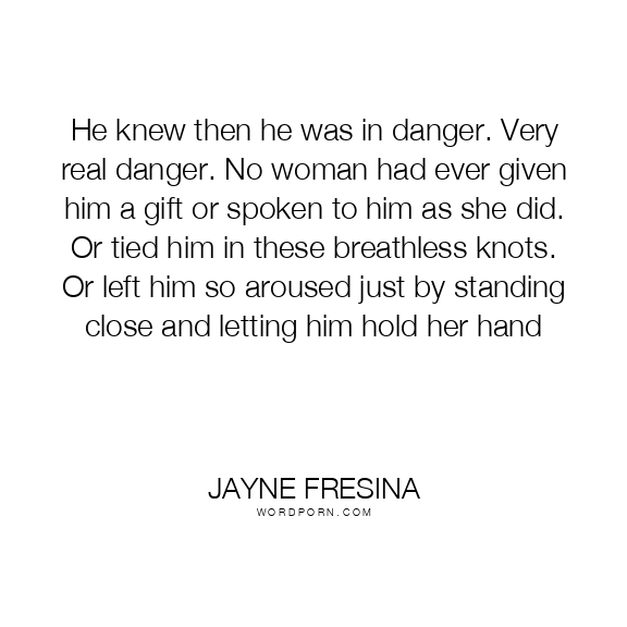 He knew then he was in danger. Very real danger. No woman had ever given him a gift or spoken to him as she did. Or tied him in these breathless knots. Or left him so aroused just by standing close and letting him hold her hand