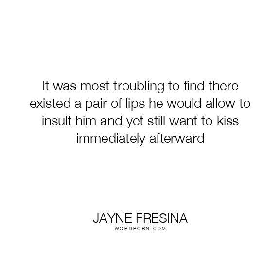 It was most troubling to find there existed a pair of lips he would allow to insult him and yet still want to kiss immediately afterward