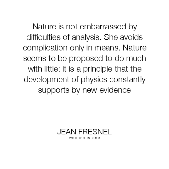 Nature is not embarrassed by difficulties of analysis. She avoids complication only in means. Nature seems to be proposed to do much with little: it is a principle that the development of physics constantly supports by new evidence