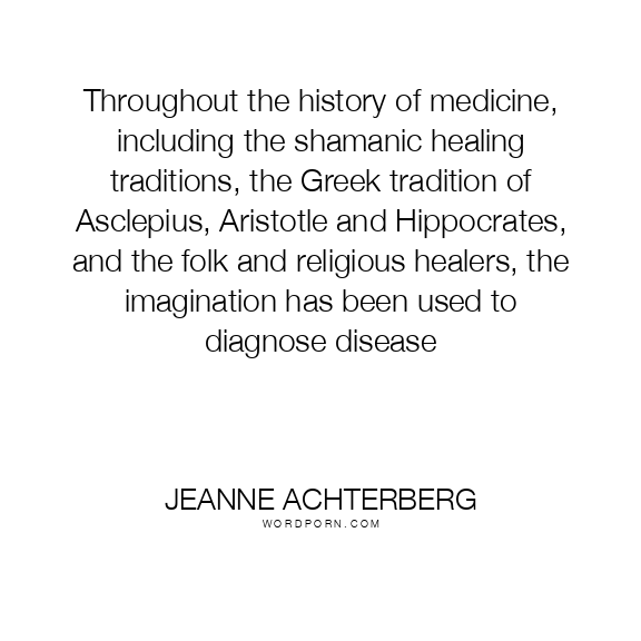 Throughout the history of medicine, including the shamanic healing traditions, the Greek tradition of Asclepius, Aristotle and Hippocrates, and the folk and religious healers, the imagination has been used to diagnose disease