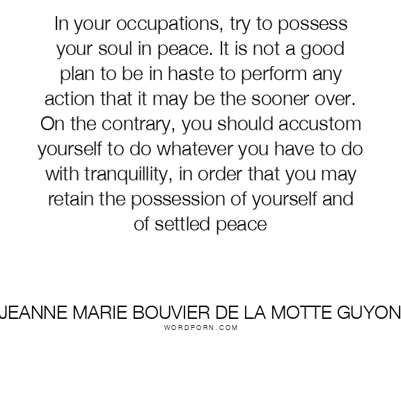 In your occupations, try to possess your soul in peace. It is not a good plan to be in haste to perform any action that it may be the sooner over. On the contrary, you should accustom yourself to do whatever you have to do with tranquillity, in order that you may retain the possession of yourself and of settled peace