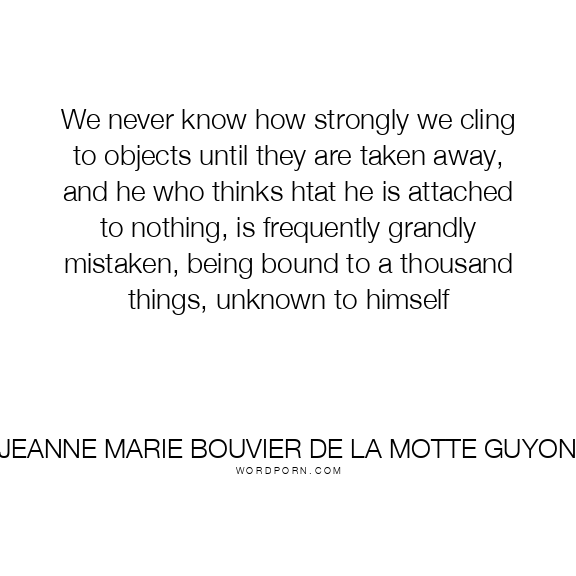 We never know how strongly we cling to objects until they are taken away, and he who thinks htat he is attached to nothing, is frequently grandly mistaken, being bound to a thousand things, unknown to himself