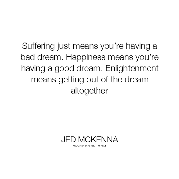 Suffering just means you’re having a bad dream. Happiness means you’re having a good dream. Enlightenment means getting out of the dream altogether