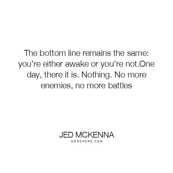 The bottom line remains the same: you’re either awake or you’re not.One day, there it is. Nothing. No more enemies, no more battles