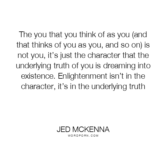 The you that you think of as you (and that thinks of you as you, and so on) is not you, it’s just the character that the underlying truth of you is dreaming into existence. Enlightenment isn’t in the character, it’s in the underlying truth